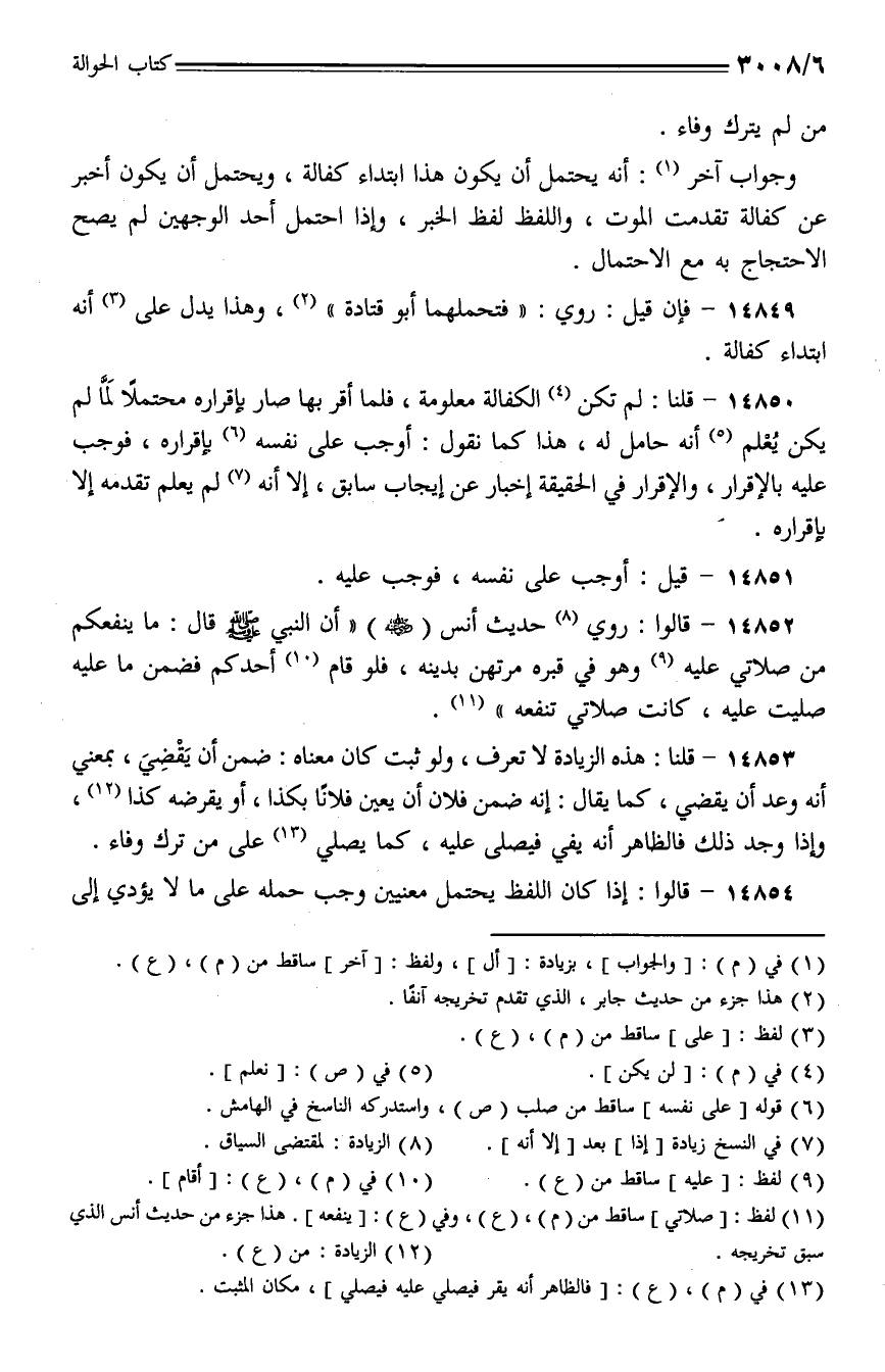 14853 - قلنا: هذه الزيادة لا تعرف، ولو ثبت كان معناه: ضمن أن يَقْضِيَ، بمعنى أنه وعد أن يقضي، كما يقال: إن ضمن فلان أن يعين فلانًا بكذا، أو يقرضه كذا، وإذا وجد ذلك فالظاهر أنه يفي فيصلي عليه، كما يصلي على من ترك وفاء.