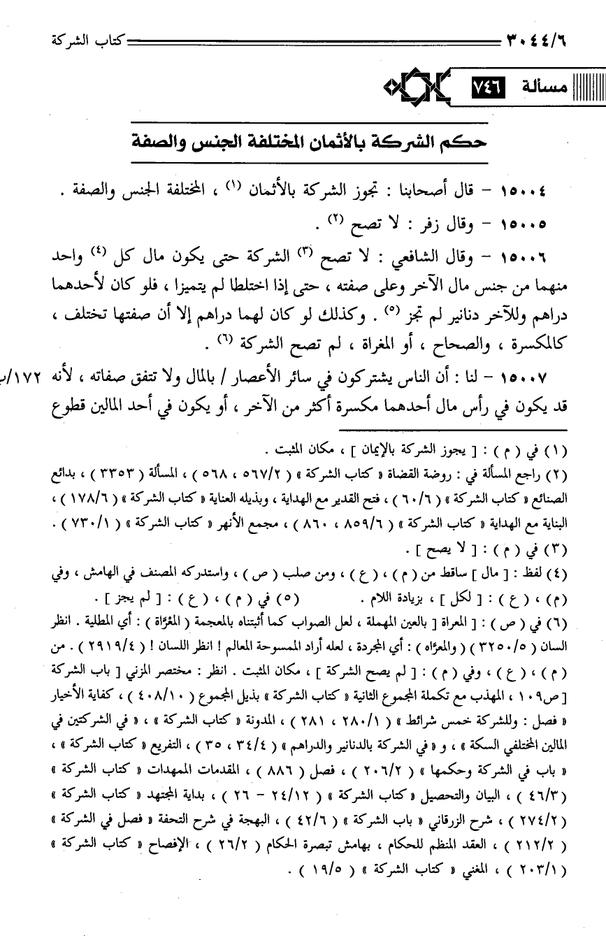 15004 - قال أصحابنا: تجوز الشركة بالأثمان، المختلفة الجنس والصفة.