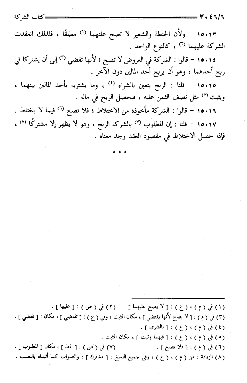 15016 - قالوا: الشركة مأخوذة من الاختلاط؛ فلا تصح فيما لا يختلط.
