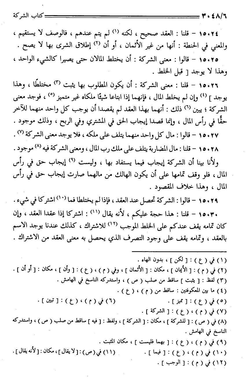 15025 - قالوا: معنى الشركة: أن يختلط المالان حتى يصيرا كالشيء الواحد، وهذا لا يوجد [قبل الخلط.