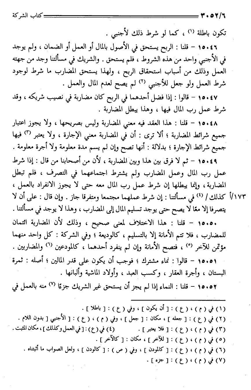 15047 - قالوا: إذا فضل أحدهما في الربح كان مضاربة في نصيب شريكه، وقد شرط عمل رب المال فيها، وهذا يبطل المضاربة.