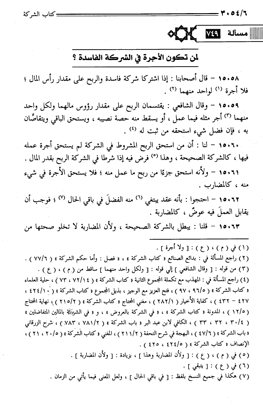 15058 - قال أصحابنا: إذا اشتركا شركة فاسدة والربح على مقدار رأس المال؛ فلا أجرة لواحد منهما.