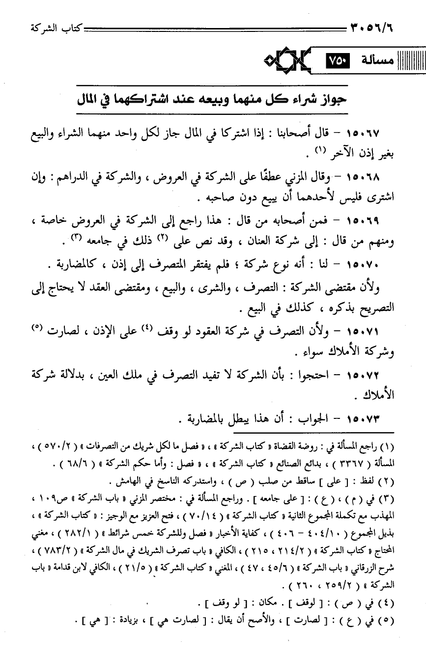 15071 - ولأن التصرف في شركة العقود لو وقف على الإذن، لصارت وشركة الأملاك سواء.