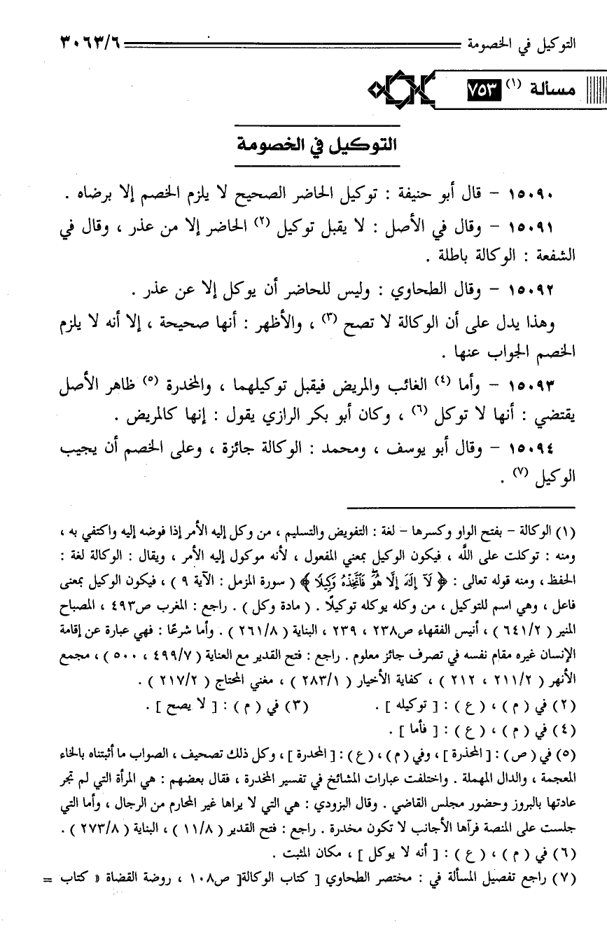 15093 - وأما الغائب والمريض فيقبل توكليهما، والمخدرة ظاهر الأصل يقتضي: أنها لا توكل، وكان أبو بكر الرازي يقول: إنها كالمريض.