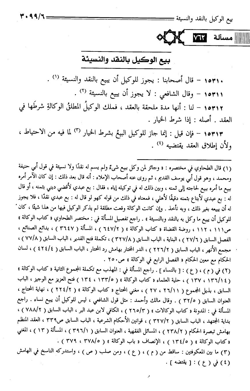15310 - قال أصحابنا: يجوز للوكيل أن يبيع بالنقد والنسيئة.