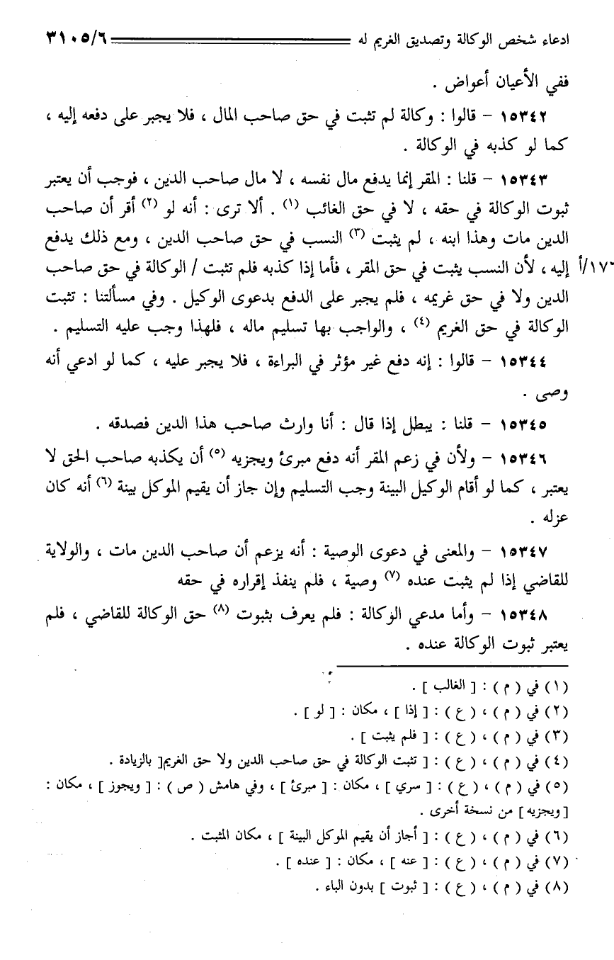 15348 - وأما مدعي الوكالة: فلم يعرف بثبوت حق الوكالة للقاضي، فلم يعتبر ثبوت الوكالة عنده.
