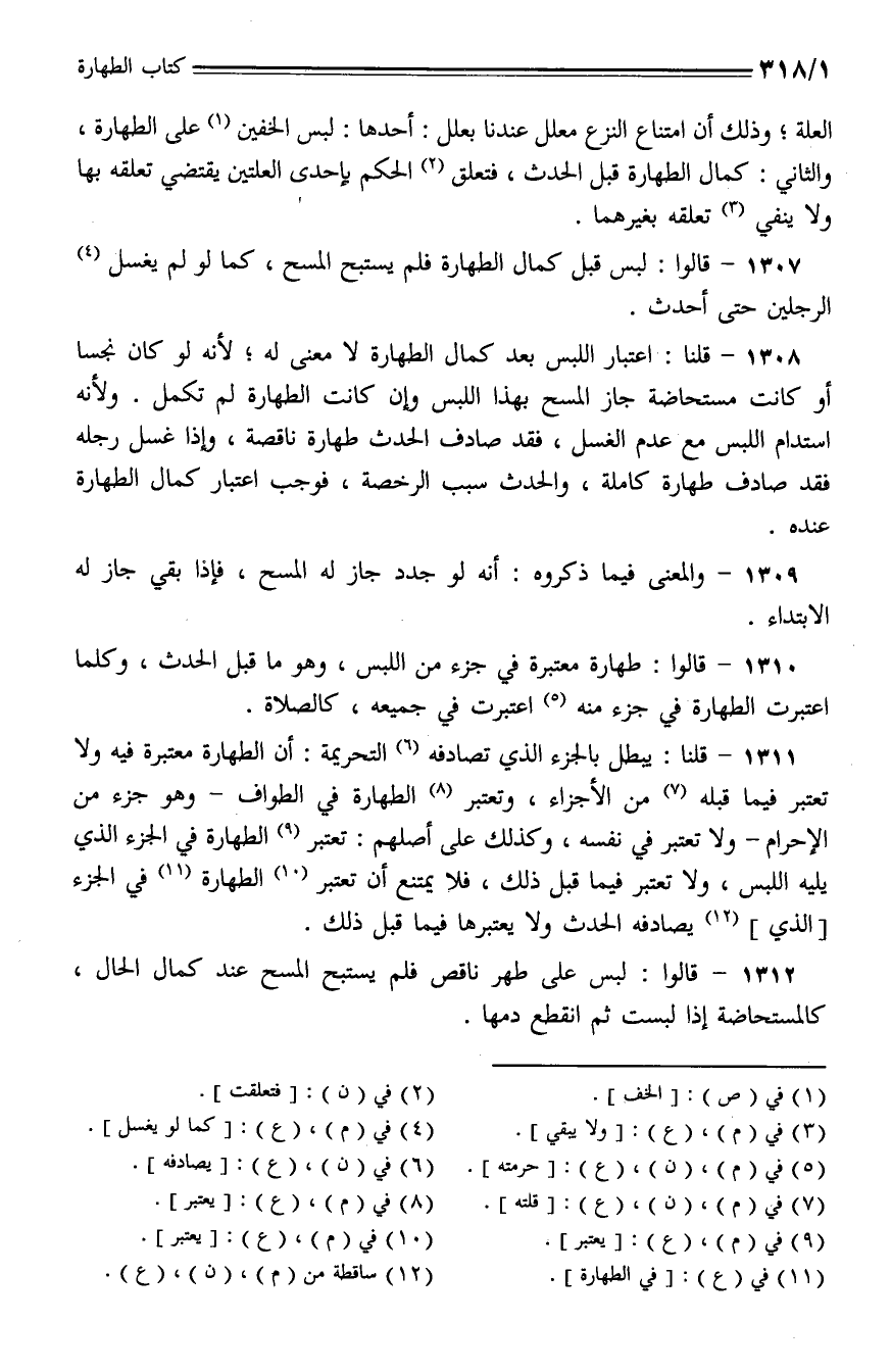 1310 - قالوا: طهارة معتبرة في جزء من اللبس، وهو ما قبل الحدث، وكلما اعتبرت الطهارة في جزء منه اعتبرت في جميعه، كالصلاة.