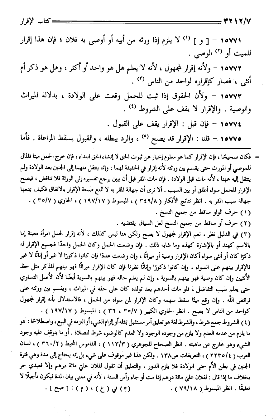 15773 - ولأن الحقوق إذا ثبت للحمل وقعت على الولادة، بدلالة الميراث والوصية. والإقرار لا يقف على الشروط.