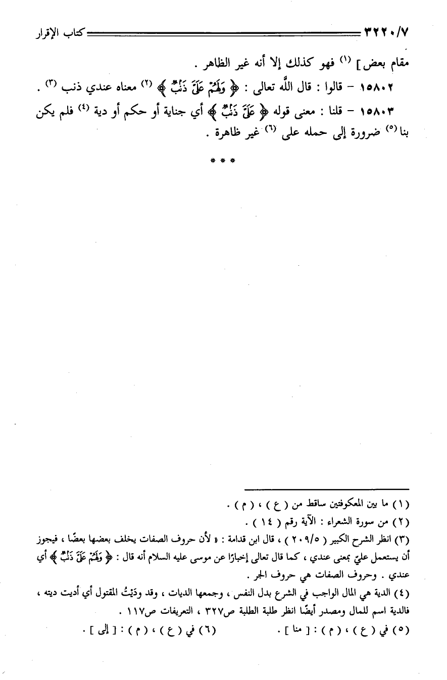 15803 - قلنا: معنى قوله {على ذنب} أي جناية أو حكم أو دية فلم يكن بنا ضرورة إلى حمله على غير ظاهرة.