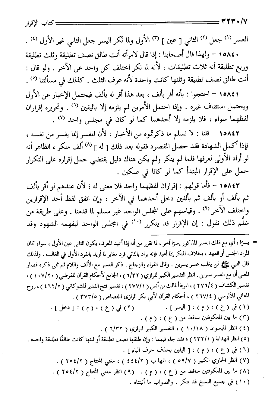 15843 - فأما قولهم: إقراران لفظهما واحد فلا معنى له؛ لأن عندهم لو أقر بألف ثم بألف أو بألف ثم بألفين دخل أحدهما في الآخر، وإن اتفق لفظ أحد الإقرارين واختلف الآخر. وقياسهم على المجلس الواحد غير مسلم لما قدمنا. وعلى طريقة من سلم ذلك نقول: إن الإقرار قد يتكرر في المجلس الواحد ليفهمه الشهود وقد