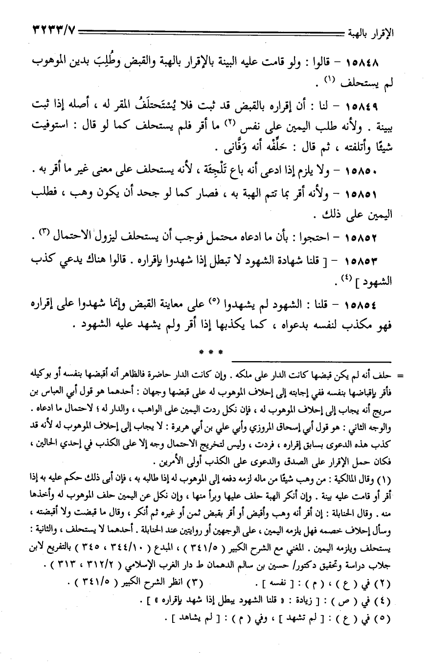 15848 - قالوا: ولو قامت عليه البينة بالإقرار بالهبة والقبض وطلت بدين الموهوب لم يستحلف.