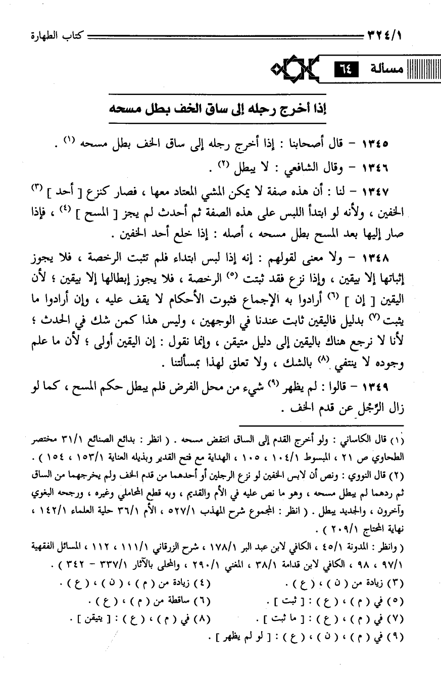 1349 - قالوا: لم يظهر شيء من محل الفرض فلم يبطل حكم المسح، كما لو زال الرِّجْلِ عن قدم الخف.