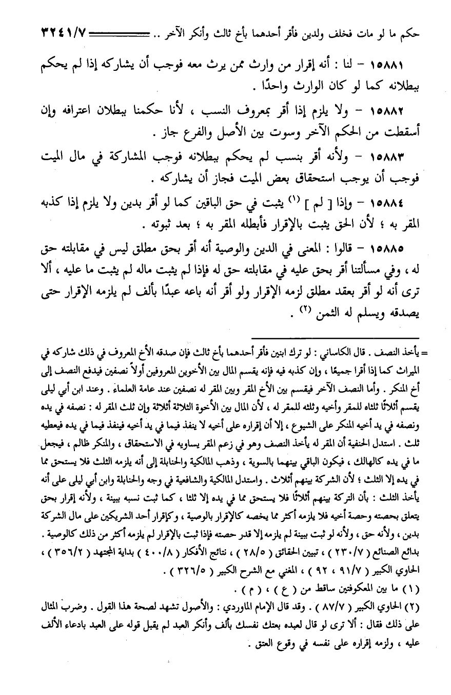 15881 - لنا: أنه إقرار من وارث ممن يرث معه فوجب أن يشاركه إذا لم يحكم ببطلانه كما لو كان الوارث واحدًا.