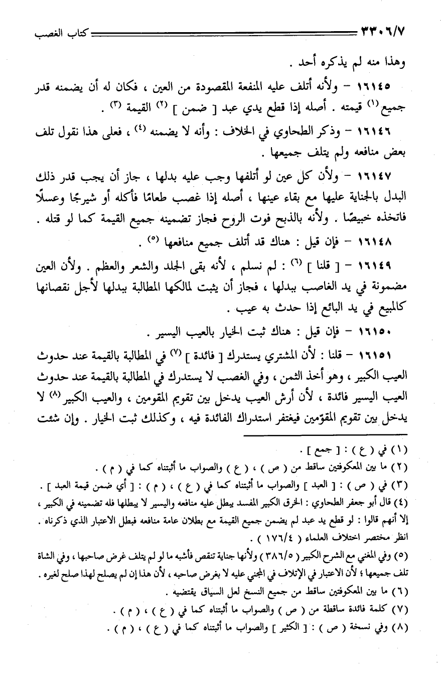 16149 - [قلنا]: لم نسلم، لأنه بقى الجلد والشعر والعظم. ولأن العين مضمونة في يد الغاصب ببدلها، فجاز أن يثبت لمالكها المطالبة ببدلها لأجل نقصانها كالمبيع في يد البائع إذا حدث به عيب.