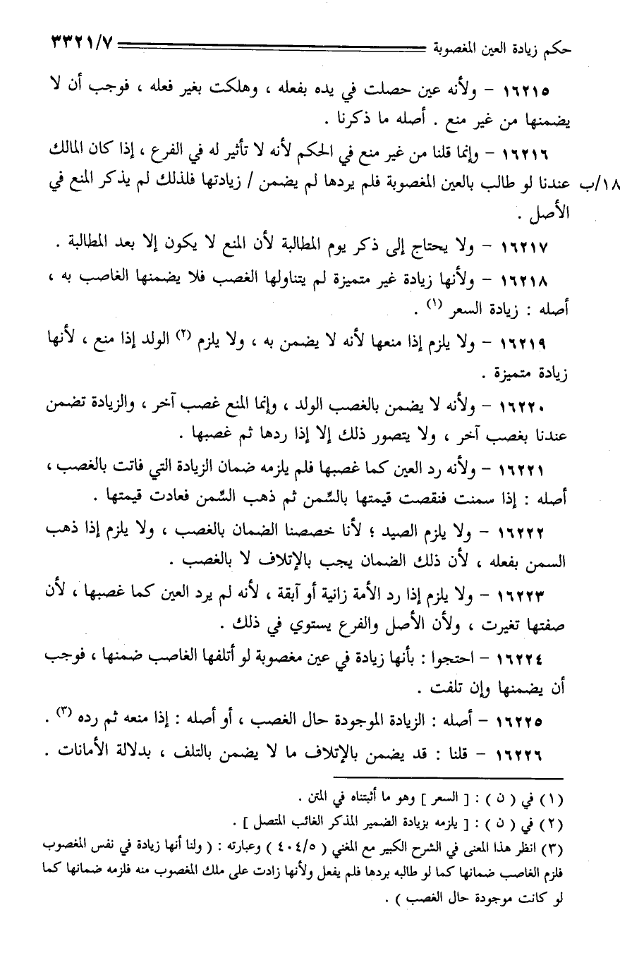 16225 - أصله: الزيادة الموجودة حال الغصب، أو أصله: إذا منعه ثم رده.