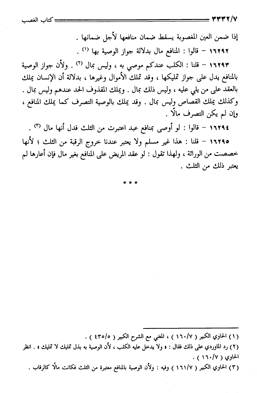 16294 - قالوا: لو أوصى بمنافع عبد اعتبرت من الثلث فدل أنها مال.