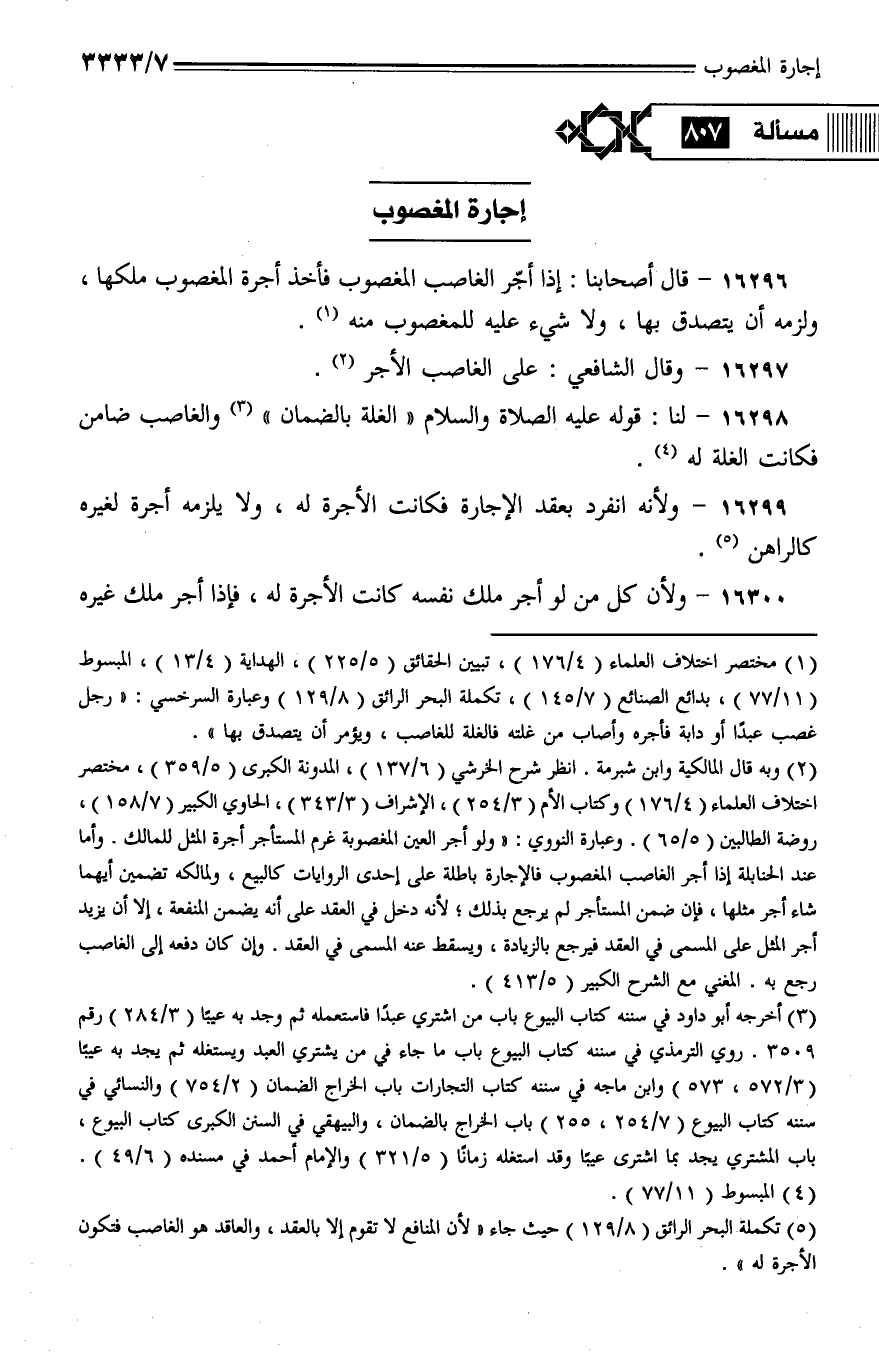 16297 - وقال الشافعي: على الغاصب الأجر.