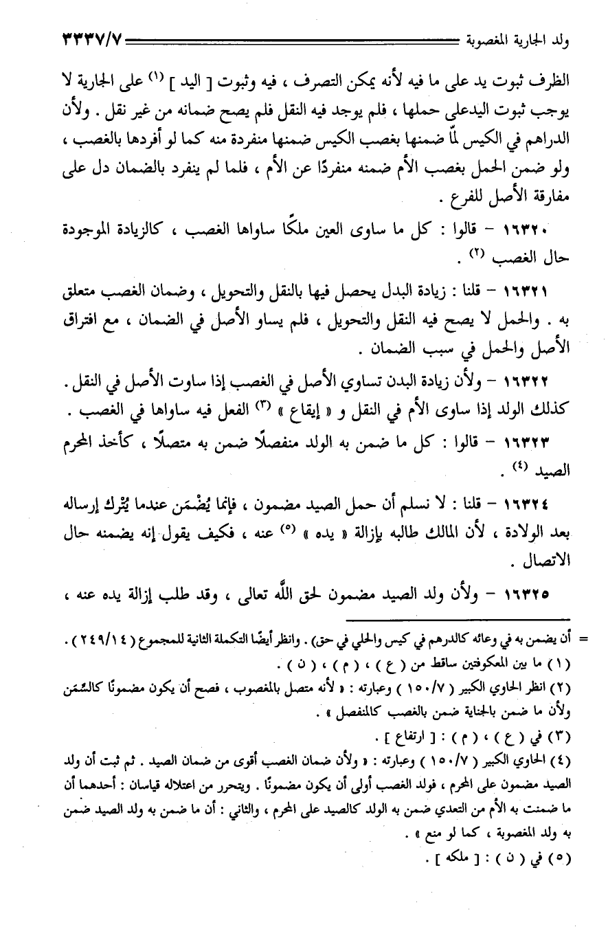16322 - ولأن زيادة البدن تساوي الأصل في الغصب إذا ساوت الأصل في النقل. كذلك الولد إذا ساوى الأم في النقل و (إيقاع) الفعل فيه ساواها في الغصب.