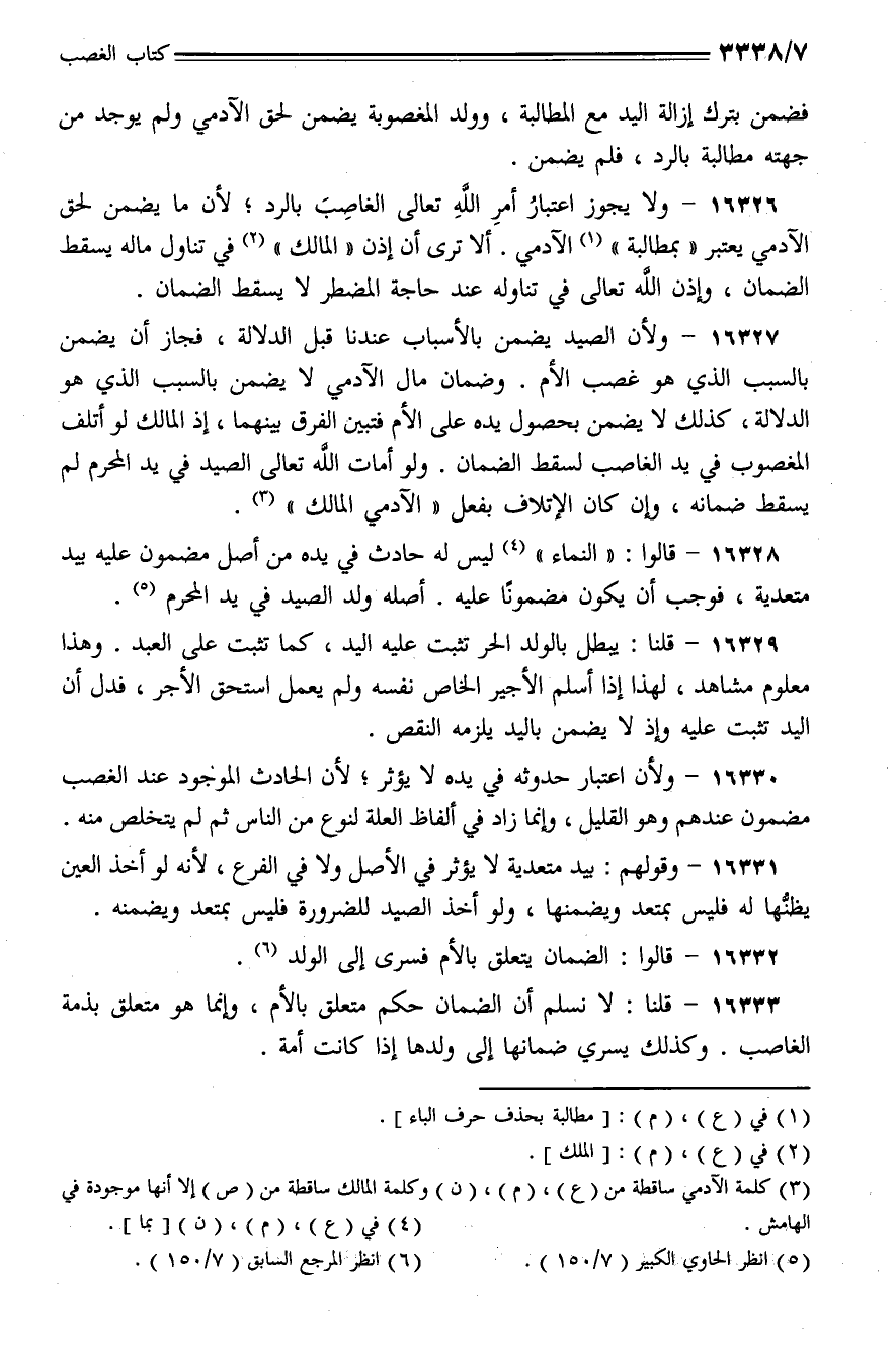 16330 - ولأن اعتبار حدوثه في يده لا يؤثر؛ لأن الحادث الموجود عن الغصب مضمون عندهم وهو القليل، وإنما زاد في ألفاظ العلة لنوع من الناس ثم لم يتخلص منه.
