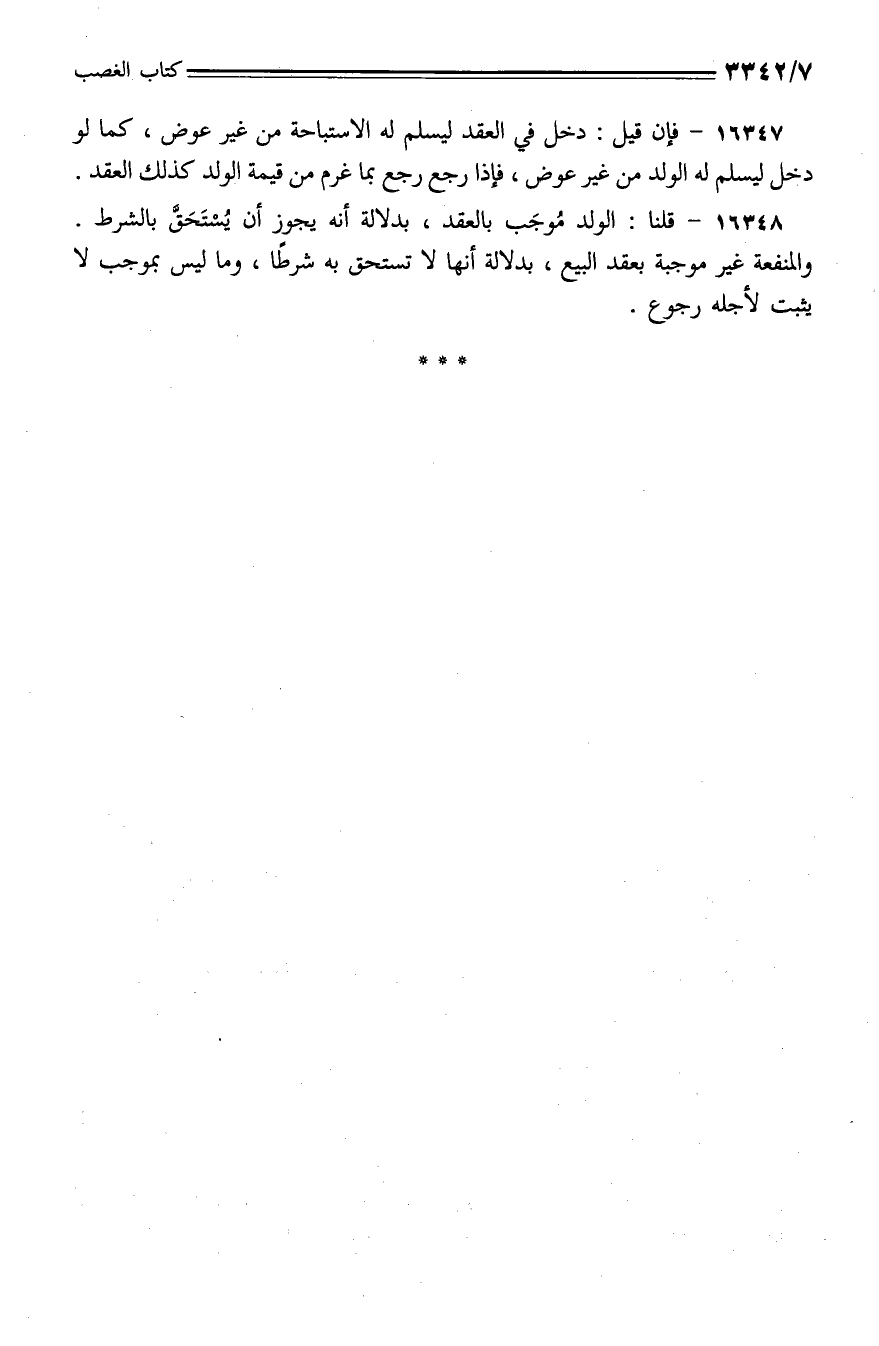 16348 - قلنا: الولد موجب بالعقد، بدلالة أنه يجوز أن يستحق بالشرط. والمنفعة غير موجبة بعقد البيع، بدلالة أنها لا تستحق به شرطًا، وما ليس بموجب لا يثبت لأجله رجوع.