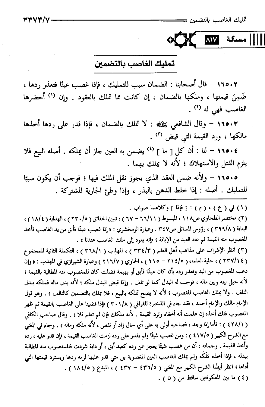16503 - وقال الشافعي رحمه الله: لا تملك بالضمان، فإذا قدر على ردها أخذها مالكها، ورد القيمة التي قبض.