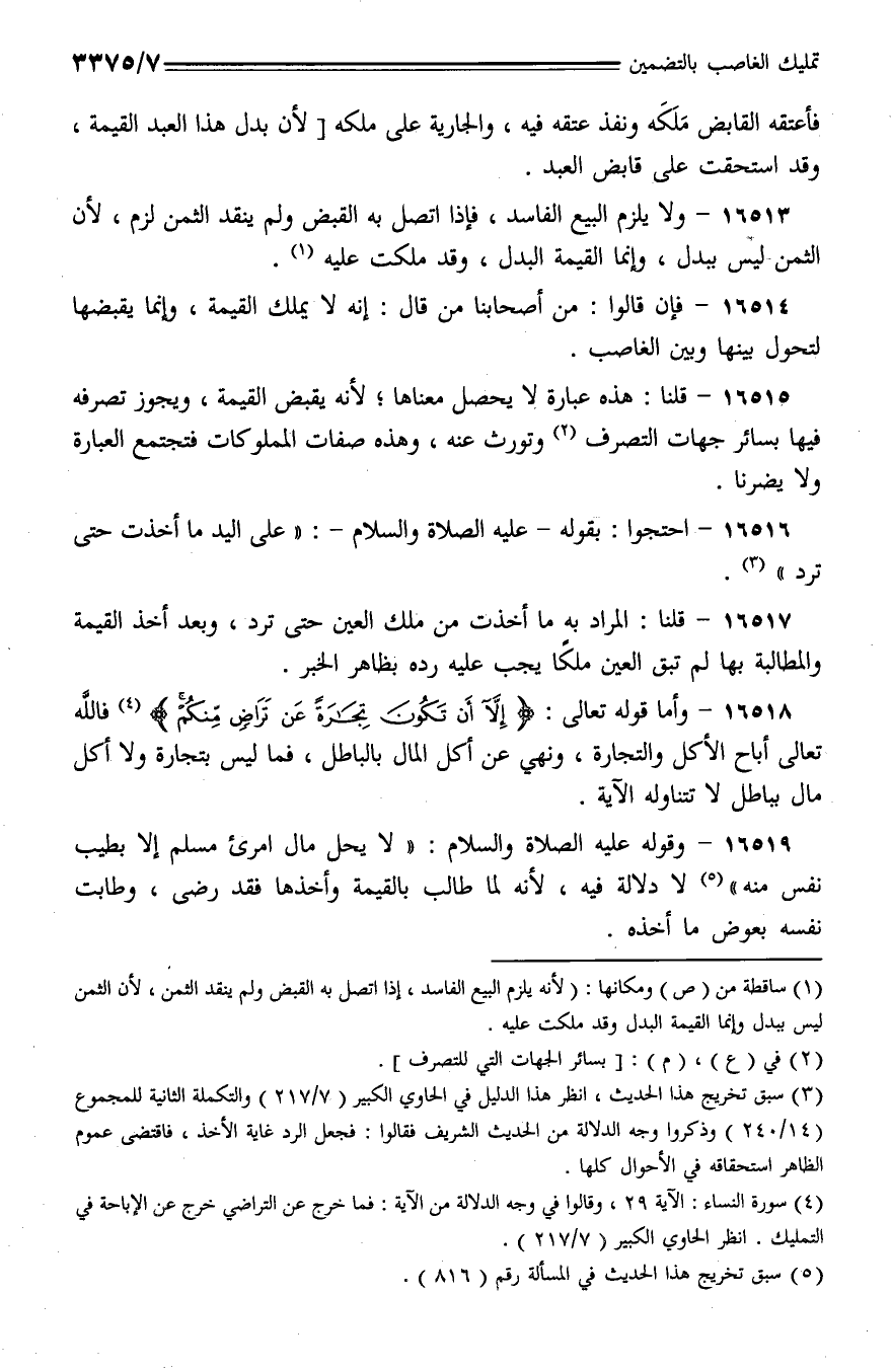 16516 - احتجوا: بقوله- عليه الصلاة والسلام-: (على اليد ما أخذت حتى ترد).