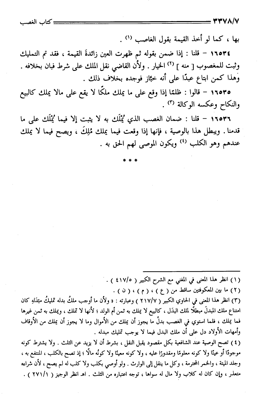 16536 - قلنا: ضمان الغصب الذي يملك به لا يثبت إلا فيما يملك على ما قدمنا. ويبطل هذا بالوصية، فإنها إذا وقعت فيها يملك ملك، ويصح فيما لا يملك عندهم وهو الكلب ويكون الموصي لهم الحق به.