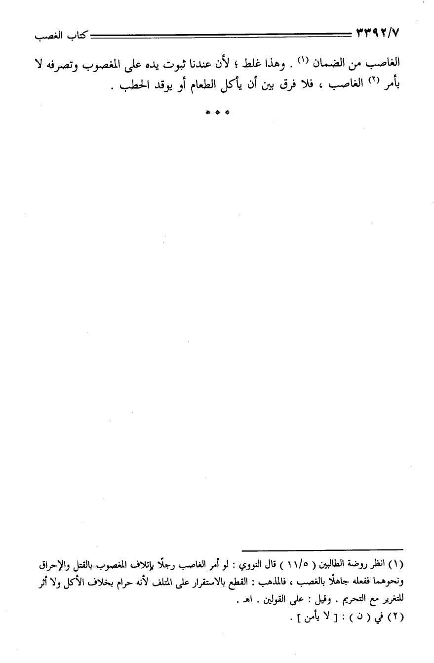 الغاصب من الضمان. وهذا غلط؛ لأن عندنا ثبوت يده على المغصوب وتصرفه لا بأمر الغاصب، فلا فرق بين أن يأكل الطعام أو يوقد الحطب.