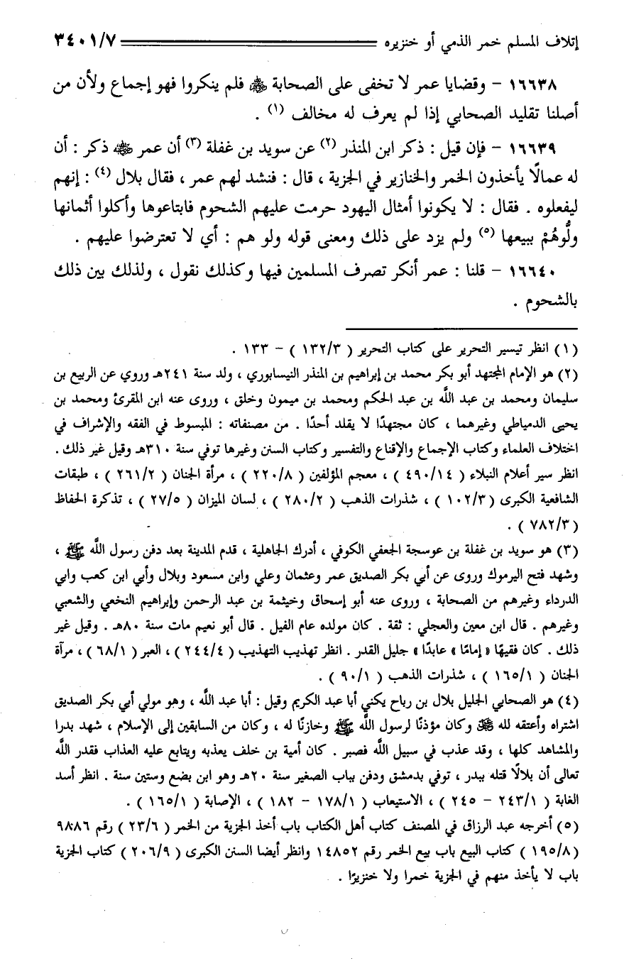 16639 - فإن قيل: ذكر ابن المنذر عن سويد بن غفلة أن عمر - رضي الله عنه - ذكر: أن له عمالًا يأخذون الخمر والخنازير في الجزية، قال: فنشد لهم عمر، فقال بلال: إنهم ليفعلوه. فقال: لا يكونوا أمثال اليهود حرمت عليهم الشحوم فابتاعوها وأكلوا أثمانها ولوهم يبيعها ولم يزد على ذلك ومعنى قوله ولو هم: أي لا تعترضوا عليهم.