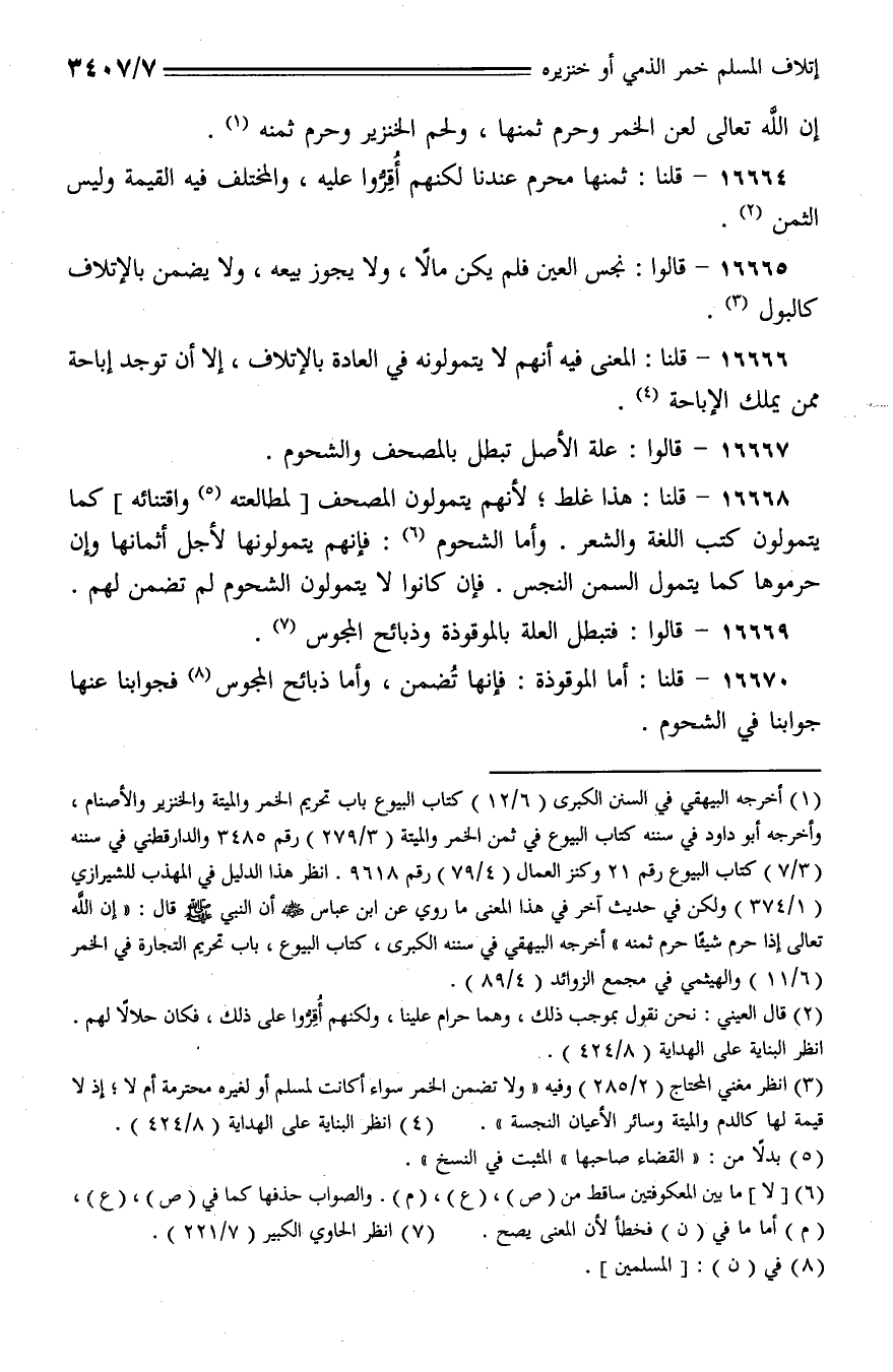 16668 - قلنا: هذا غلط؛ لأنهم يتمولون المصحف [لمطالعته واقتنائه] كما يتمولون كتب اللغة والشعر. وأما الشحوم: فإنهم يتمولونها لأجل أثمانها وإن حرموها كما يتمول السمن النجس. فإن كانوا لا يتمولون الشحوم لم تضمن لهم.