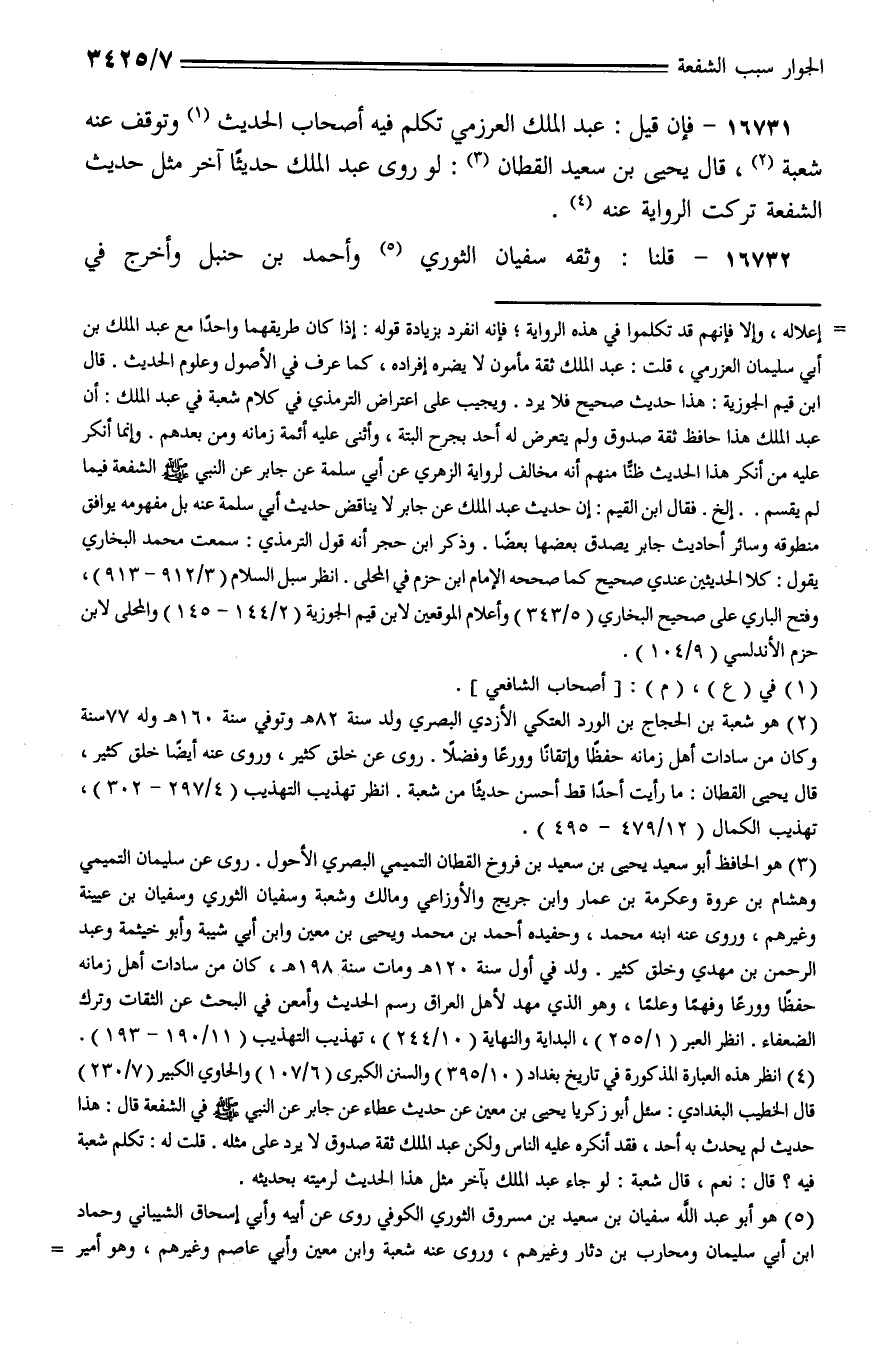 16731 - فإن قيل: عبد الملك العرزمي تكلم فيه أصحاب الحديث وتوقف عنه شعبة، قال يحيي بن سعيد القطان: لو روي عبد الملك حديثًا آخر مثل حديث الشفعة تركت الرواية عنه.