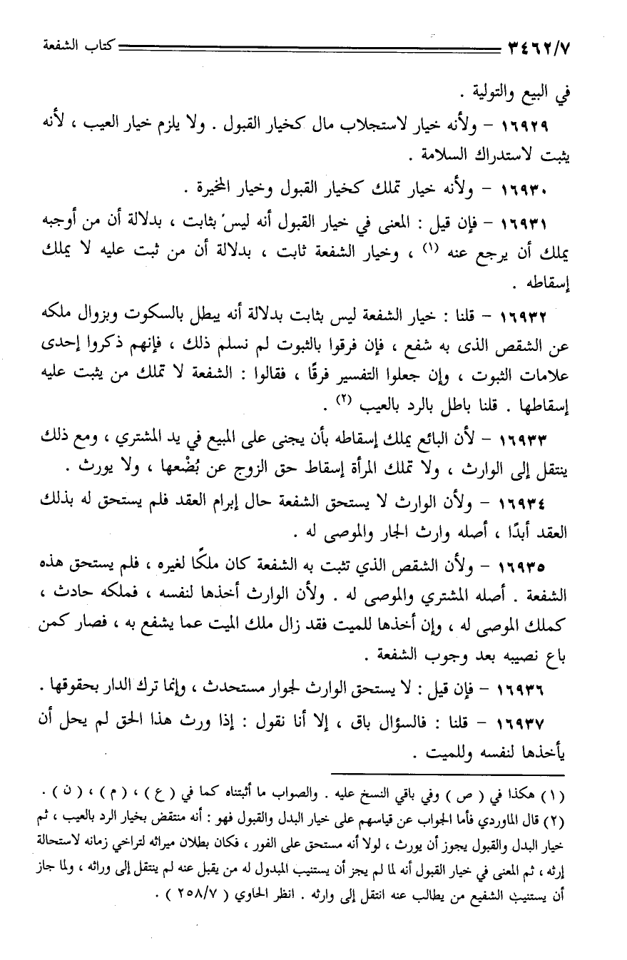 16932 - قلنا: خيار الشفعة ليس بثابت بدلالة أنه يبطل بالسكوت وبزوال ملكه عن الشقص الذي به شفع، فإن فرقوا بالثبوت لم نسلم ذلك، فإنهم ذكروا إحدى علامات الثبوت، وإن جعلوا التفسير فرقًا، فقالوا: الشفعة لا تملك من يثبت عليه إسقاطها. قلنا باطل بالرد بالعيب.