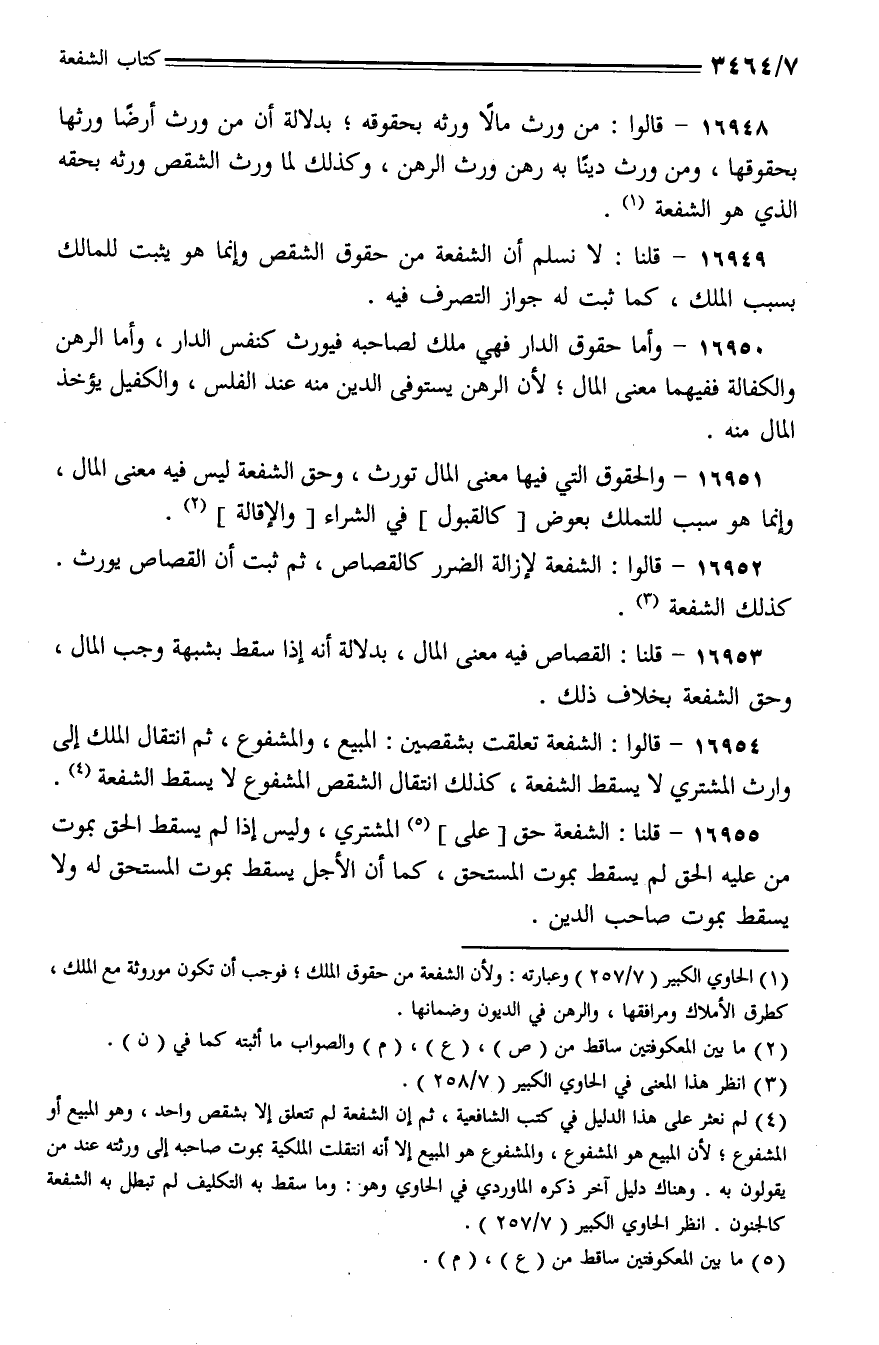 16951 - والحقوق التي فيها معنى المال تورث، وحق الشفعة ليس فيه معنى المال. وإنما هو سبب للتملك بعوض [كالقبول] في الشراء [والإقالة].