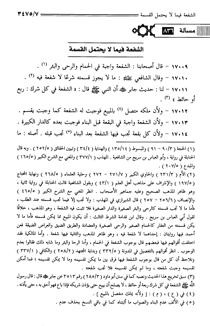17010 - وقال الشافعي رحمه الله: ما لا يجوز قسمته شرعًا لا شفعة فيه.