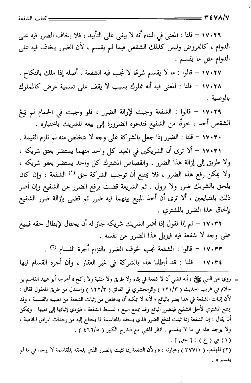 17033 - قالوا: الشفعة تجب لخوف الضرر بالتزام أجرة القسام.
