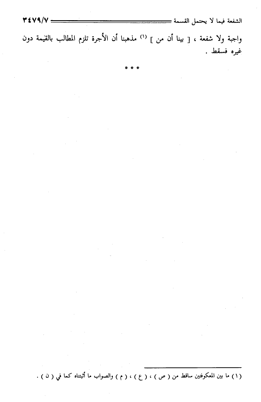 واجبة ولا شفعة، [بينا أن من] مذهبا أن الأجرة تلزم المطالب بالقيمة دون غيره فسقط.