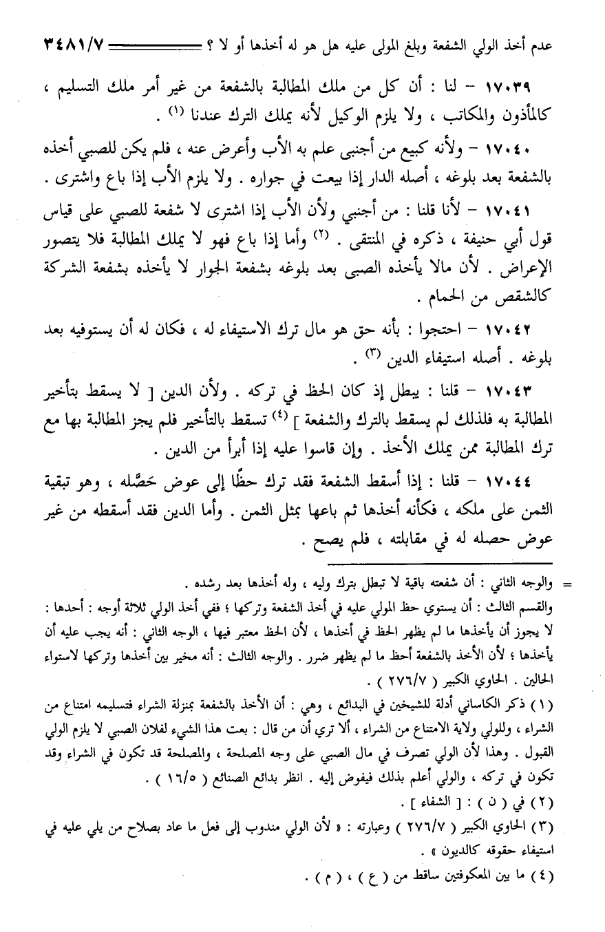 17043 - قلنا: يبطل إذ كان الحظ في تركه. ولأن الدين [لا يسقط بتأخير المطالبة به فلذلك لم يسقط بالترك والشفعة] تسقط بالتأخير فلم يجز المطالبة بها مع ترك المطالبة ممن يملك الأخذ. وإن قاسوا عليه إذا أبرأ من الدين.
