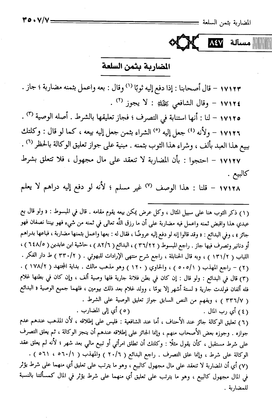 17127 - احتجوا: بأن المضاربة لا تنعقد على مال مجهول، فلا تتعلق بشرط كالبيع.