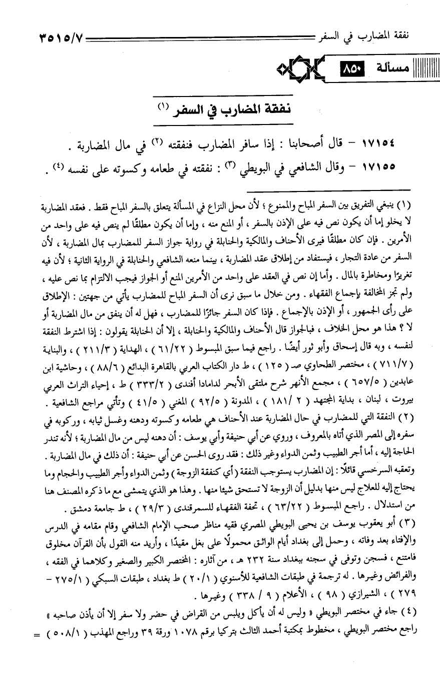 17154 - قال أصحابنا: إذا سافر المضارب فنفقته في مال المضاربة.