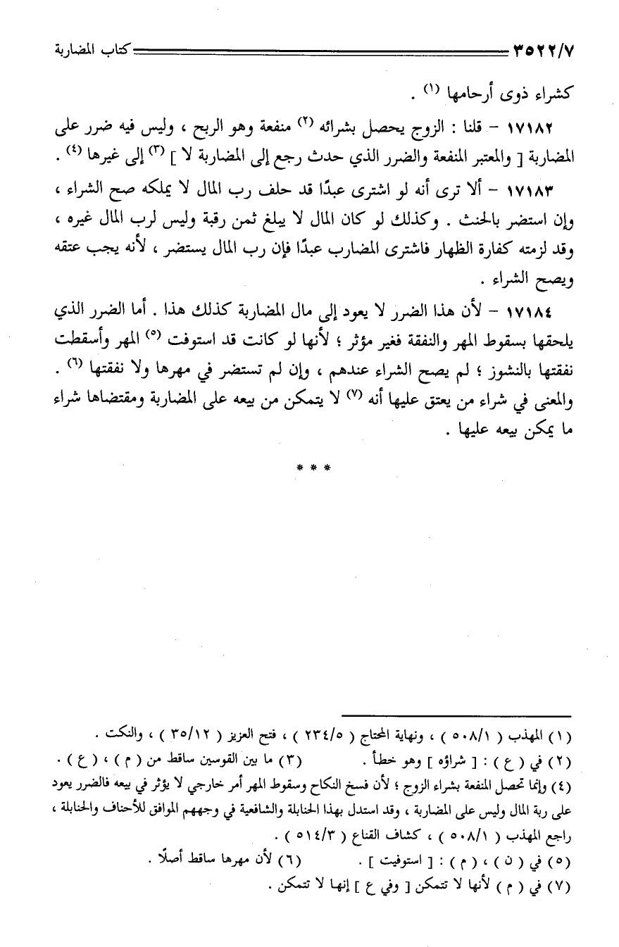 17182 - قلنا: الزوج يحصل بشرائه منفعة وهو الربح، وليس فيه ضرر على المضاربة [والمعتبر المنفعة والضرر الذي حدث رجع إلى المضاربة لا] إلى غيرها.