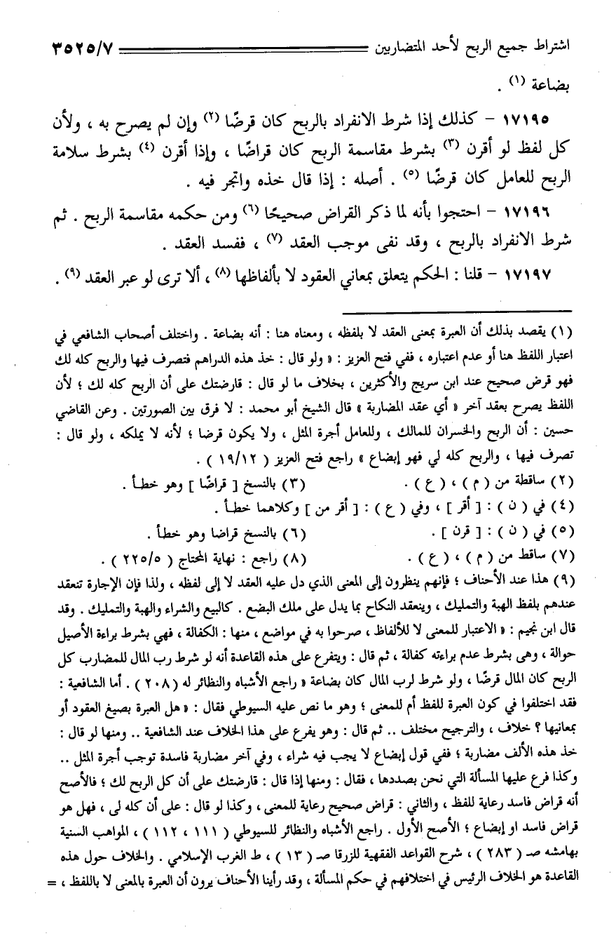17196 - احتجوا بأنه لما ذكر القراض صحيحًا ومن حكمه مقاسمة الربح. ثم شرط الانفراد بالربح، وقد نفى موجب العقد، ففسد العقد.