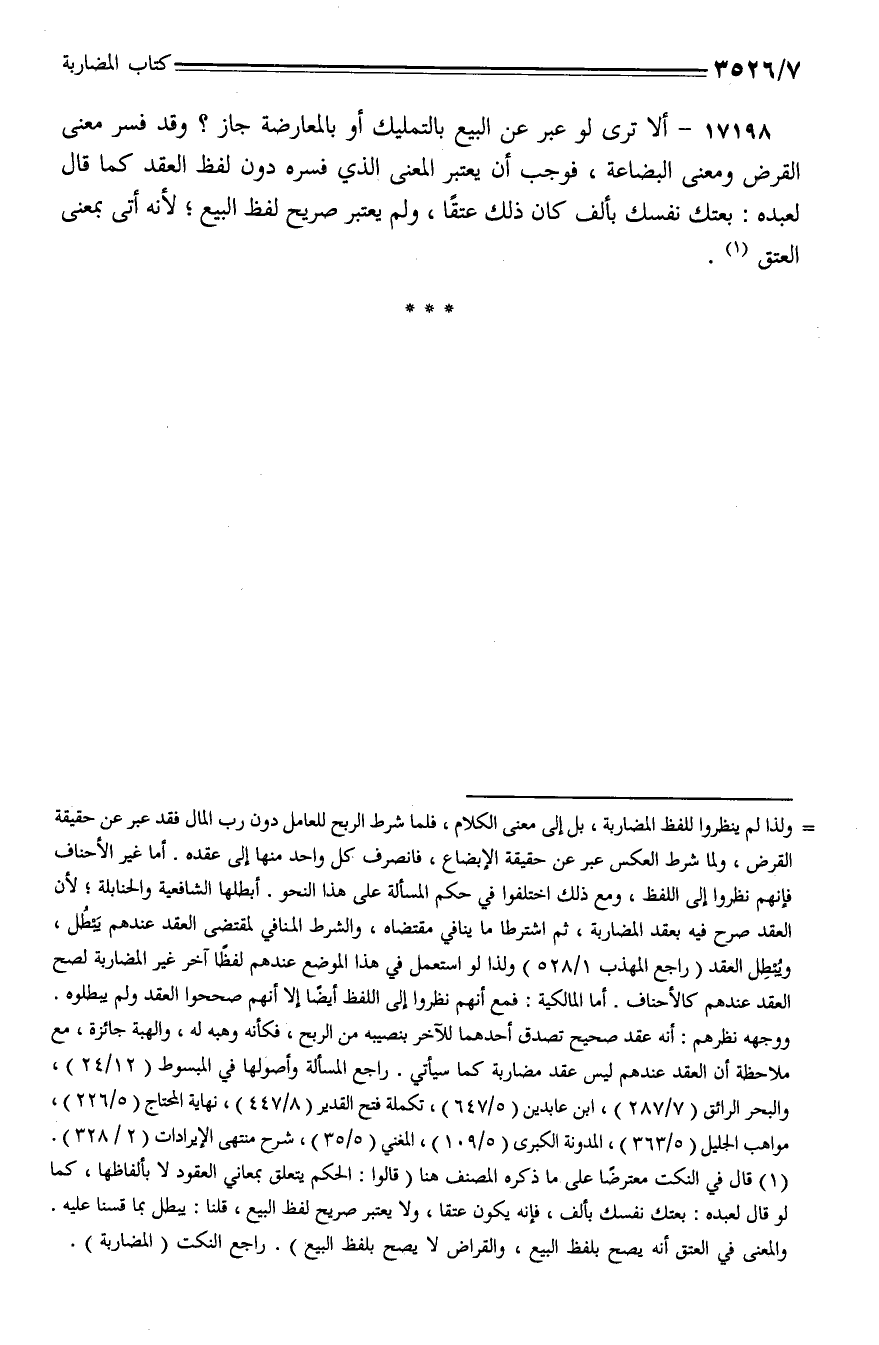 17198 - ألا ترى لو عبر عن البيع بالتمليك أو بالمعارضة جاز؟ وقد فسر معنى القرض ومعنى البضاعة، فوجب أن يعتبر المعنى الذي فسره دون لفظ العقد كما قال لعبده: بعتك نفسك بألف كان ذلك عتقًا، ولم يعتبر صريح لفظ البيع؛ لأنه أتى بمعنى العتق.