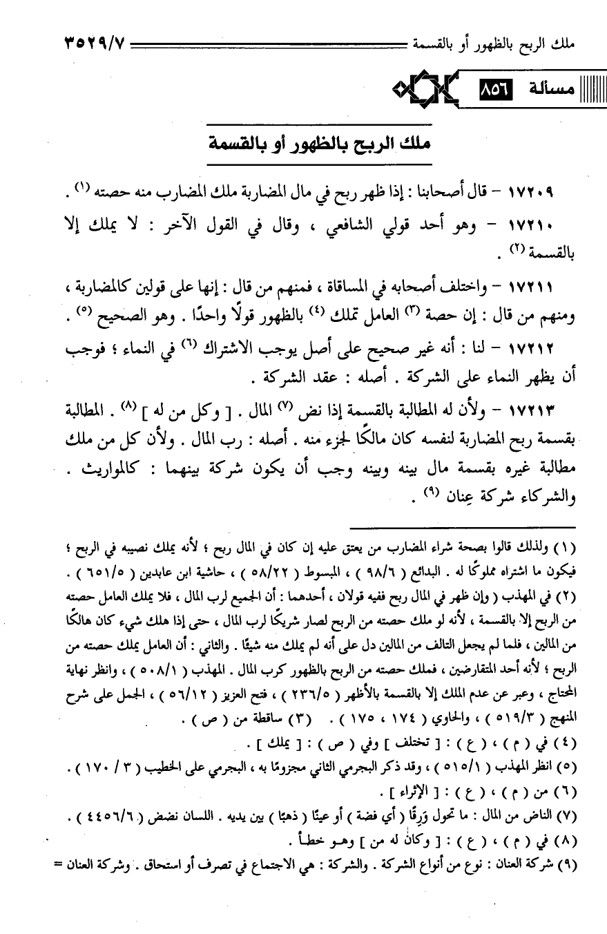 17213 - ولأن له المطالبة بالقسمة إذا نض المال. [وكل من له]. المطالبة بقسمة ربح المضاربة لنفسه كان مالكًا لجزء منه. أصله: رب المال. ولأن كل من ملك مطالبة غيره بقسمة مال بينه وبينه وجب أن يكون شركة بينهما: كالمواريث. والشركاء شركة عنان.
