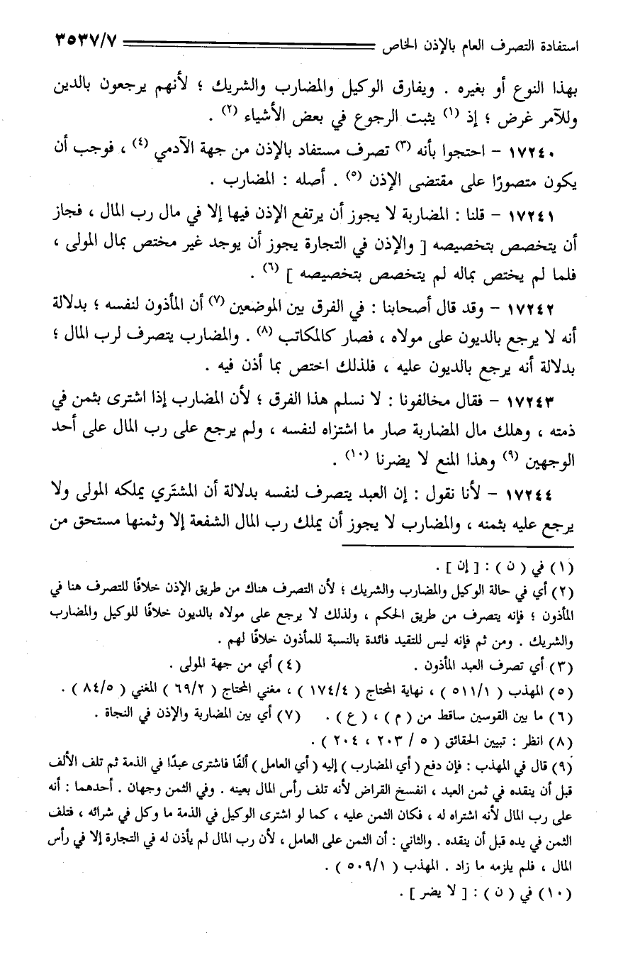 17241 - قلنا: المضاربة لا يجوز أن يرتفع الإذن فيها إلا في مال رب المال، فجاز أن يتخصص بتخصيصه [والإذن في التجارة يجوز أن يوجد غير مختص بمال المولى، فلما لم يختص بماله لم يتخصص بتخصيصه].