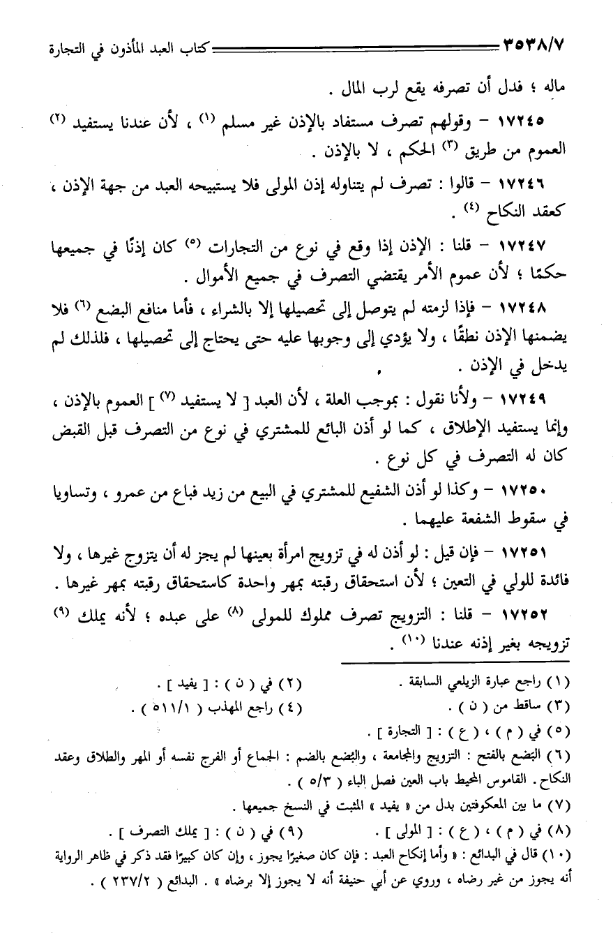 17245 - وقولهم تصرف مستفاد بالإذن غير مسلم، لأن عندنا يستفيد العموم من طريق الحكم، لا بالإذن.