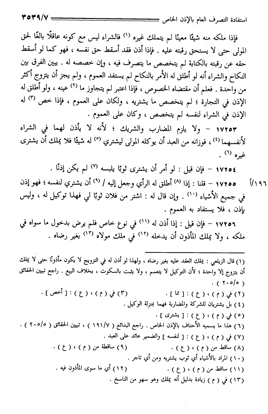 17255 - قلنا: إذا أطلق له الرأي وجعل إليه/ أن يشتري لنفسه؛ فهو إذن في جميع الأشياء. وإن قال له: اشتر من فلان ثوبًا لي فهذا توكيل له، وليس بإذن، فلا يستفاد به العموم.