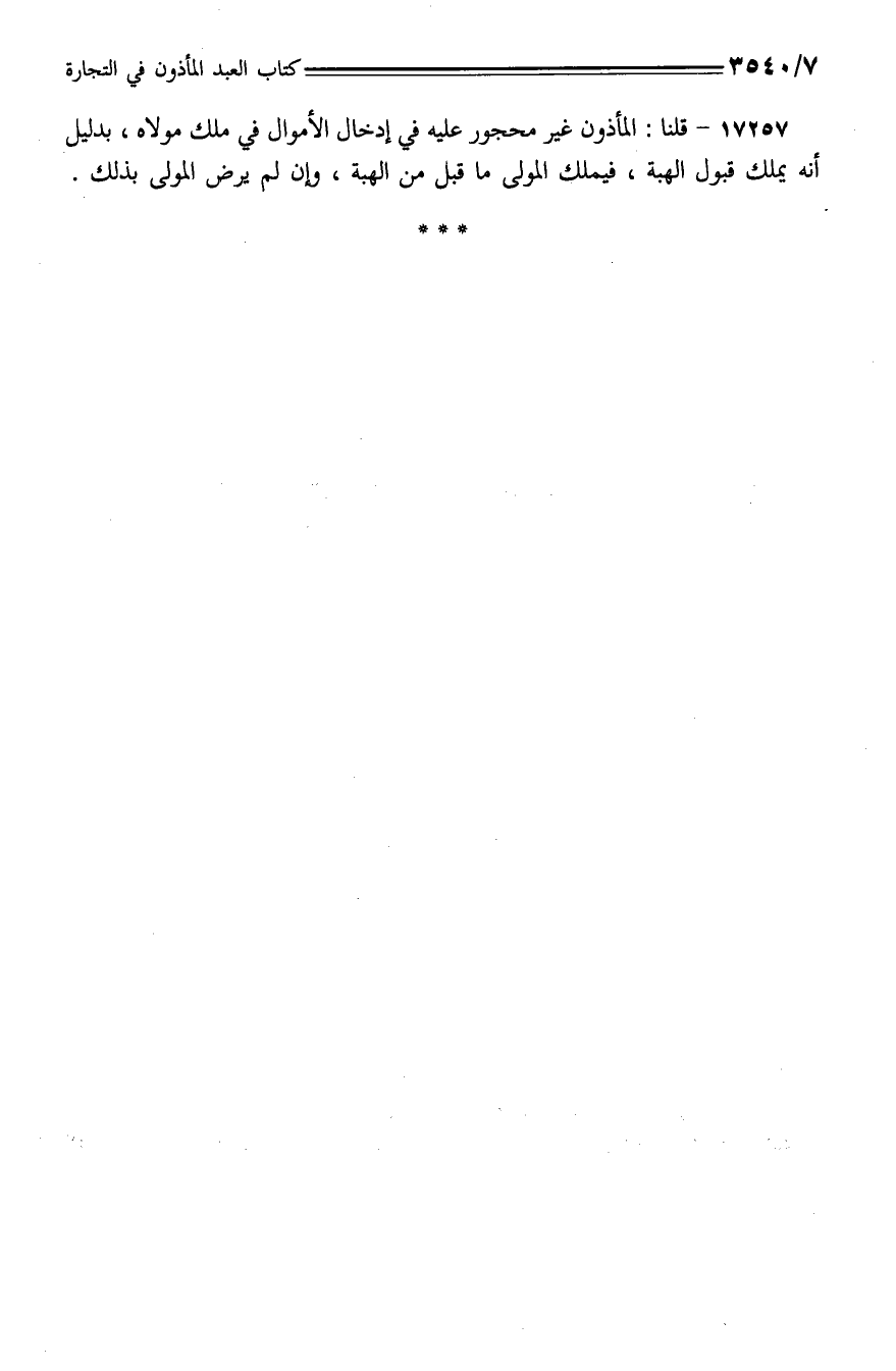 17257 - قلنا: المأذون غير محجور عليه في إدخال الأموال في ملك مولاه، بدليل أنه يملك قبول الهبة، فيملك المولى ما قبل من الهبة، وإن لم يرض المولى بذلك.
