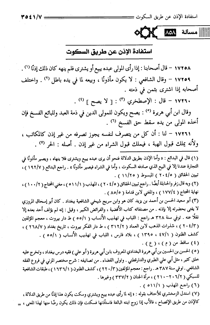 17258 - قال أصحابنا: إذا رأى المولى عبده يبيع أو يشترى فلم ينهه كان ذلك إذنًا.