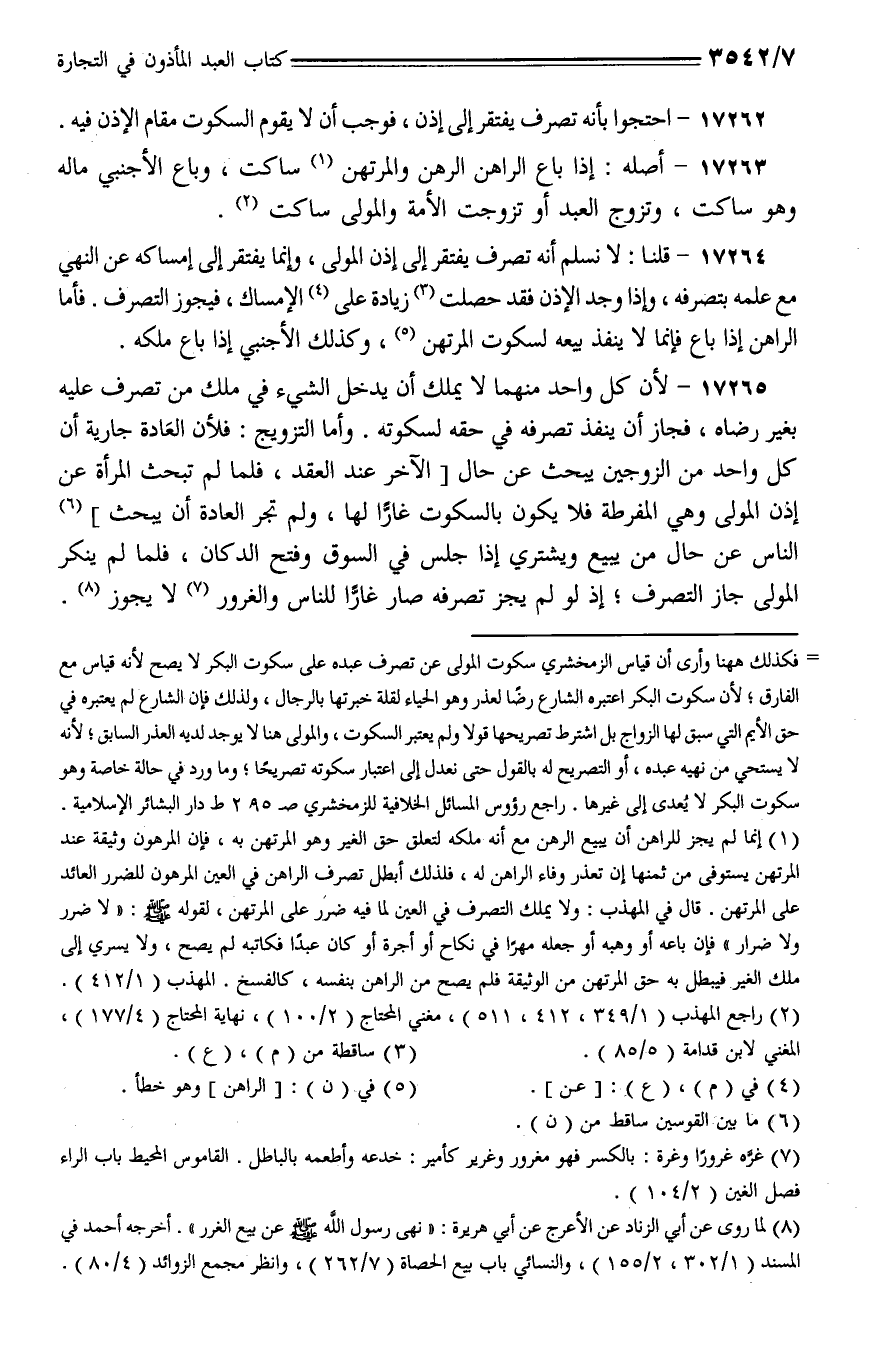 17264 - قلنا: لا نسلم أنه تصرف يفتقر إلى إذن المولى، وإنما يفتقر إلى إمساكه عن النهي مع علمه بتصرفه، وإذا وجد الإذن فقد حصلت زيادة على الإمساك، فيجوز التصرف. فأما الراهن إذا باع فإنما لا ينفذ بيعه لسكوت المرتهن، وكذلك الأجنبي إذا باع ملكه.