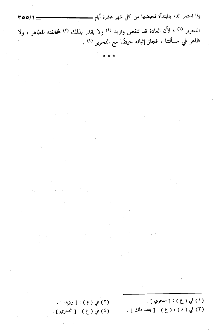 التحرير؛ لأن العادة قد تنقص وتزيد ولا يقدر بذلك لمخالفته للظاهر، ولا ظاهر في مسألتنا، فجاز إثباته حيضًا مع التحرير.